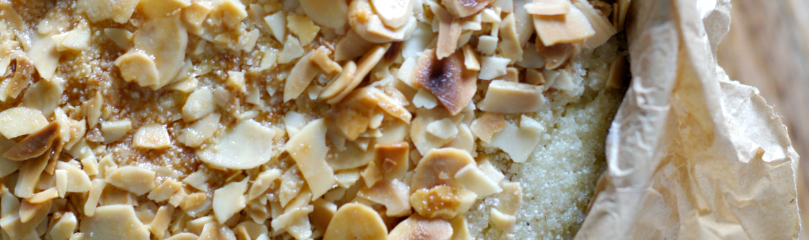 Szarlotka sypana z dodatkiem prażonych migdałów
