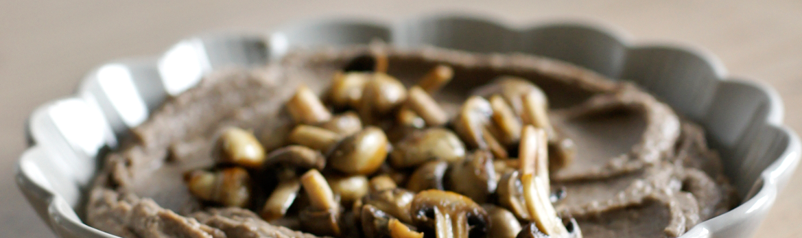 Od zawsze sprawdzają mi się różnego rodzaju pasty. Można je podać na wiele sposobów – jako baza do kanapek lub stawiając je na stole w towarzystwie świeżych, chrupiących, kolorowych warzyw. Tym razem obok klasycznego hummusu (przepis tutaj) stanęła pasta z gotowanej białej fasoli, pachnąca leśnymi grzybami, tymiankiem i bogato obsypana pieczarkami.